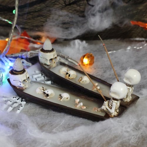 Dual Purpose Burner : Use as an incense stick holder (place in the skeleton’s hand) or a waterfall cone burner (set on the ship’s bow), or combine both for a mesmerizing ferry boat engulfed in swirling smoke.